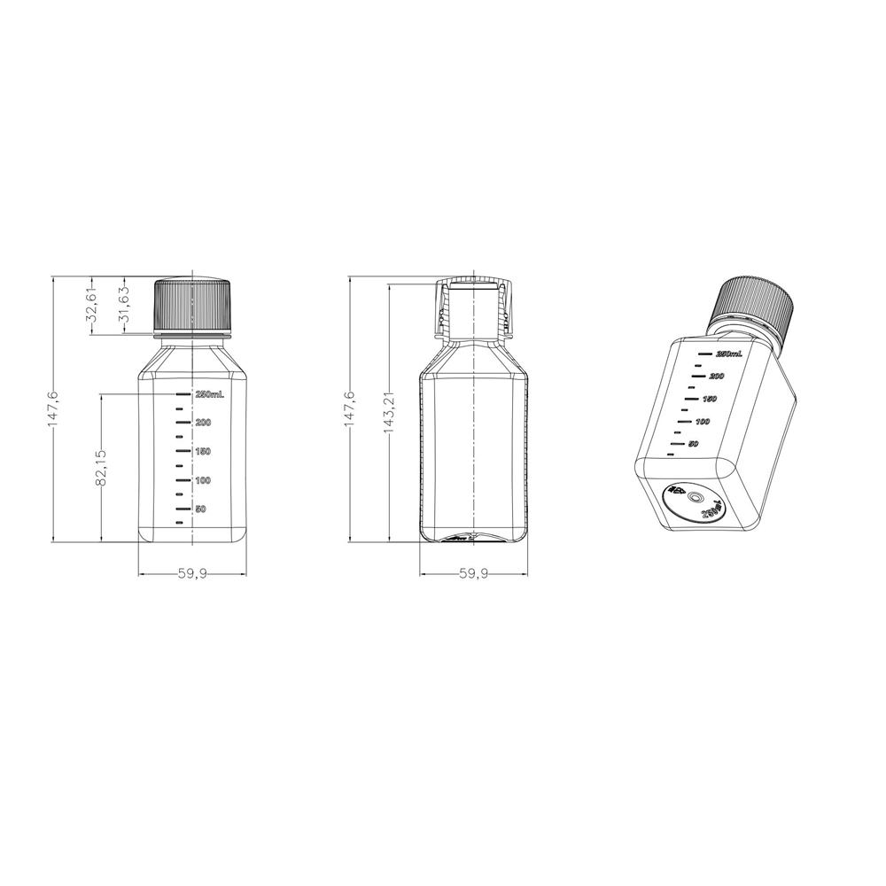 Servicebio® PET-250S-T-J Reagent Bottle, 250 mL RNase & DNase Free, Square Shoulder ,Dual-color Injection Cap
