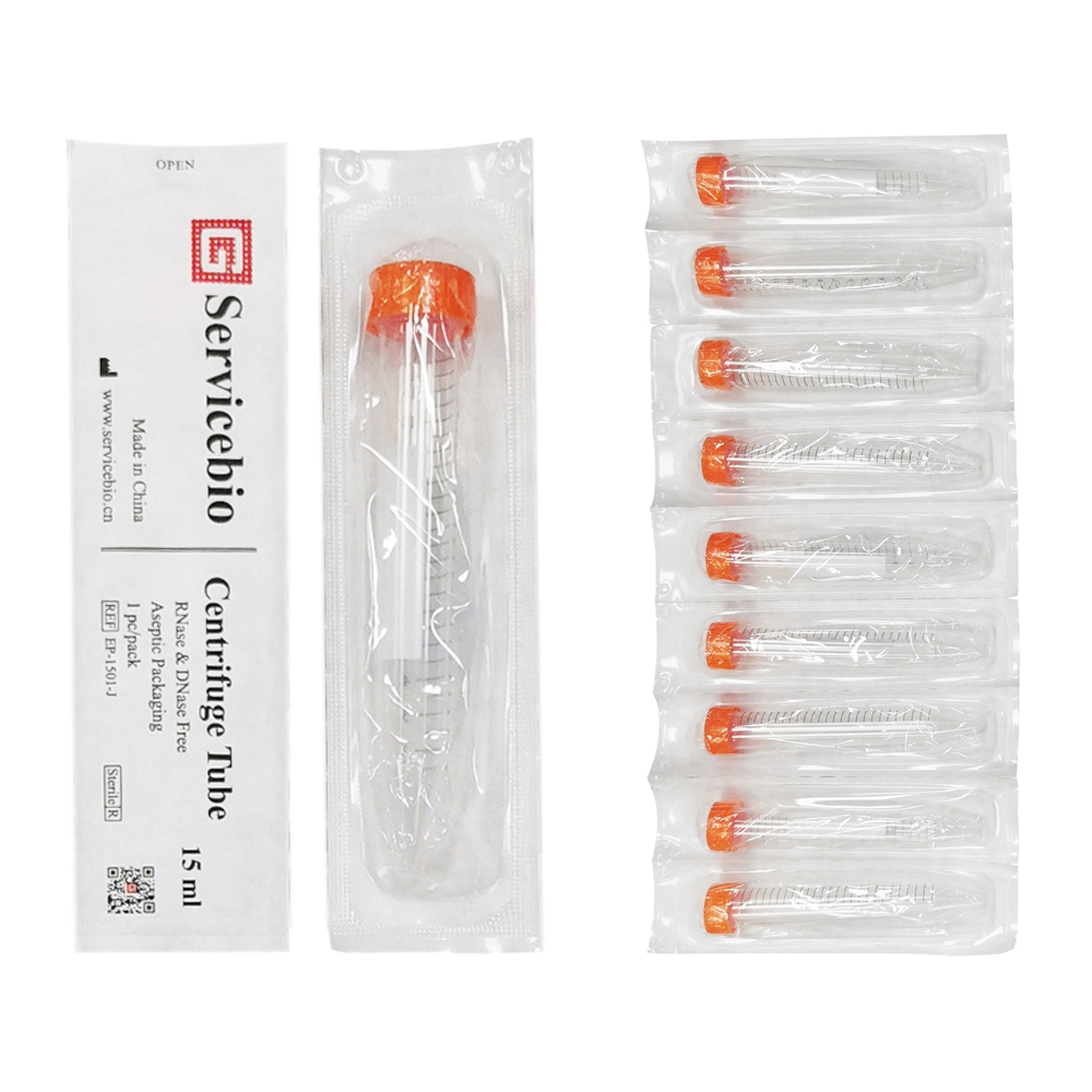 Servicebio® EP-1501-J Centrifuge Tubes,15 mL Individually Wrapped, V-bottom, Bagged, RNase & DNase Free